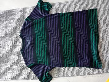 Questa è una maglia pre-partita del Real Madrid firmata Adidas. Il design è moderno e vivace, con una base nera arricchita da motivi ondulati verde e viola. Sul petto compaiono il logo Adidas in verde e lo stemma del Real Madrid in bianco. In basso a destra è presente il logo AEROREADY, che indica un tessuto tecnico traspirante, perfetto per l’attività sportiva. Stile audace, pensata per il riscaldamento o per un look sportivo casual.