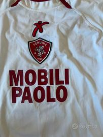 🔴⚪ Maglia originale A.C. Perugia stagione 2004/2005, versione away (trasferta) bianca, indossata in quel campionato da Eusebio Di Francesco, numero 8.