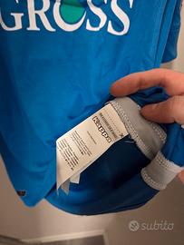 Metto in vendita la maglia Home dell'Empoli FC della stagione 2020/2021. Si tratta della versione ufficiale da gara, nuova, mai indossata e completa di cartellini originali. Dettagli del prodotto: Giocatore: Personalizzazione ufficiale CROCIATA con il numero 4. Stagione del Centenario: La maglia presenta lo stemma speciale "Empoli F.C. 1920-2020" per celebrare i 100 anni del club. Versione: Modello Gara (Kombat System) con vestibilità Regular Fit. Taglia: L (Large). Condizioni: Nuova con cartellino. Caratteristiche e Sponsor: Sponsor completi: Computer Gross sul fronte, Sammontana sul petto, Inpa sulla manica e Pediatrica sul retro sotto il numero. Dettagli tecnici: Loghi Kappa (Omini) in argento sulle spalle e logo Kappa sul petto. Retrocollo: Presenta la scritta celebrativa "#EMPOLIFC1920". Autenticità garantita: Etichette interne Kappa (RN# 174934) e cartellino ufficiale con codice a barre.
