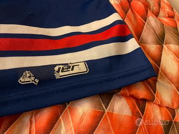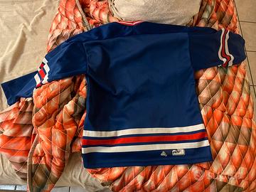 Vendo per collezionisti maglietta originale hockey su ghiaccio NHL dei New York Rangers anni 80/90 in buono stato, taglia bambino 10 anni.