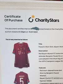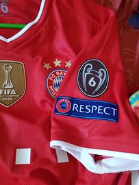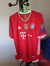 maglia rossa home del Bayern Monaco FC, indossata dal difensore franceseBenjamin Pavard in occasione del match contro la SS Lazio, valido per il ritorno degli Ottavi di Finale di UEFA Champions League 2020/21.