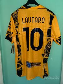 Maglia originale dell’Inter della stagione 2024/2025 del calciatore Lautaro Martinez. Con patch Champions League. Con etichetta. Taglia L.