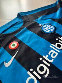 Vendo maglia originale Nike dell'Inter. • Giocatore: Nicolò Barella n°23 • Sponsor: Digitalbits (fronte) + Lenovo (retro) Patch Coppa Italia applicata • Tecnologia Nike Dri-FIT • Codice: CV7891-428 Dettagli: • Logo Inter ricamato • Logo Nike ricamato con patch • Maglia originale, non replica Condizioni: usata, presenta segni di utilizzo. Il numero e alcune scritte posteriori risultano leggermente rovinati/stropicciati. (come da foto) Taglia M (etichetta non visibile perché consumata). Ottima per tifosi e collezionisti Inter.