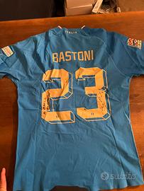 Maglia storica dell’ ITALIA indossata e autografata da BASTONI con tanto di patch di ITALIA - INGHILTERRA di Nations League