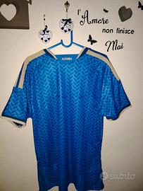 Design blu con motivo foglia, dettagli beige, logo Adidas e stemma Italia con 4 stelle. Ottime condizioni, perfetta per appassionati o collezionisti. Spedizione disponibile. Pagamento alla consegna o a mano nella zona di Reggio Emilia.