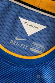 Modello ufficiale Nike Dri-FIT, colore blu con dettagli gialli, logo Juventus ricamato e patch Serie A TIM originale sulla manica.