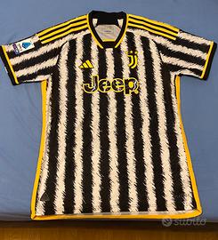 Vendo Maglia Gara Home Authentic Juventus 2023/2024, autografata da Vlahovic in Juve-Napoli dello stesso anno (dimostrabile con video), taglia L slim fit, con patch serie A, acquistata allo Juventus store al prezzo di 196,00 euro.