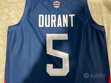 Vendo maglia blu di Kevin Durant Team USA Olimpiadi in Brasile del 2016 in ottime condizioni C’è un puntino blu nel retro della maglia in basso impercettibile Taglia L (50) per adulti Qualsiasi informazione, domanda o il resto delle foto in chat