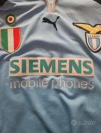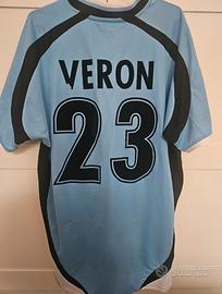 Maglia Lazio originale Puma stagione 2000/2001 con scudetto e coccarda coppa Italia sul petto, personalizzazione di Veron originale in flock (piccola scollatura sulla V) pezzo da collezione
