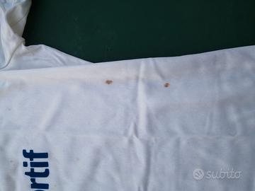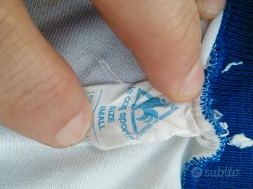 Maglia in acetato con le scritte in rilievo perfette. Maglia sempre stata in armadio , quindi mai luce o caldo o freddo. Misura S , senza strappi e senza alcun punto rovinato, ma da lavare in quanto ci sono alcune macchie, vedi foto. Vendita tra privati, vista e accettata.