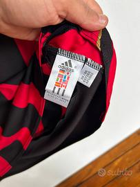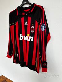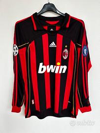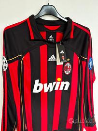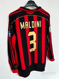 Maglietta stile Vintage home dell'AC Milan con la personalizzazione di Paolo Maldini (numero 3) appartiene alla storica stagione 2006/2007. Questa divisa è particolarmente celebre poiché il Milan la indossò durante la scalata verso la vittoria della sua settima UEFA Champions League, culminata nella finale di Atene vinta contro il Liverpool. Dettagli della Maglia: Design: Presenta le classiche strisce rossonere con dettagli in oro, come il nome "MALDINI" e il numero "3" sul retro. Elementi Champions League: L'immagine mostra le caratteristiche "patch" ufficiali dell'epoca: la Starball sulla manica destra e la patch "Badge of Honour" sulla sinistra, che celebrava i 6 trofei vinti fino a quel momento (diventati poi 7 dopo la finale del 2007). Caratteristiche tecniche: Realizzata da Adidas con tecnologia Climacool, include dettagli dorati anche lungo le spalle e i fianchi. Taglia M Operazione nostalgia One more time