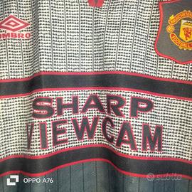 Rara e iconica maglia da trasferta del Manchester United della stagione 1995/96, prodotta da Umbro, con sponsor Sharp Viewcam.
