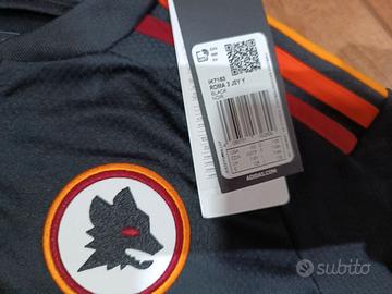 Terza Maglia nera As Roma originale adidas bambino taglia 7/8 anni adatta a ragazzi/e alti 128 cm nuova con etichette personalizzata Lukaku. Lupetto Gratton cucito e non stampato