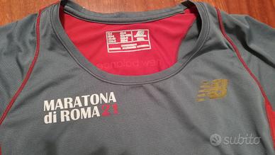 Maglia tecnica NEW BALANCE originale, della 21^ edizione della Maratona di Roma anno 2015 tg S donna, modello avvitato, tessuto "Dry" traspirante e morbido, asciugatura rapida, utilizzata pochissimo. Colore grigio con inserti rossi e dettagli oro. Euro 18.