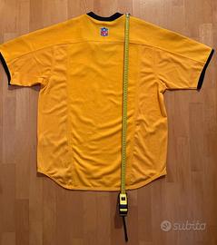 Maglia Unisex NFL Pittsburgh Steelers di marca Nike praticamente nuova indossata una volta, taglia Large, lunghezza 79 Cm, larghezza 59 Cm, 100% Poliestere, traforata sui fianchi e sotto le ascelle.