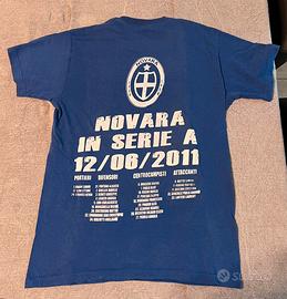 Maglia commemorativa del Novara Calcio in serie A - Colore blu. - Stampa SIAMO TORNATI e A grande. - Logo squadra sul petto.
