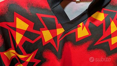 🔥 PEZZO ICONICO ANNI '90 🔥 Se cerchi l'estetica autentica delle leggende del calcio anni '90, questa maglia da portiere è definitiva. Lo stile "Vintage Goalkeeper Jersey" è il trend del momento e questo pattern geometrico rosso, giallo e nero è pura energia retrò. ✅ Dettagli che spaccano: *Design: Grafica a saette/stelle con effetto sfumato "airbrush" tipico dell'epoca. *Fit: Taglia XXL, perfetta per un look Oversize (Blockcore style). *Dettagli: Numero 6 sul retro in font vintage e polsini elastici. *Condizioni: Ottime condizioni vintage (vedi foto). Ideale per festival, streetwear o per chi vuole un pezzo unico che non si trova in giro. Non fartela scappare, maglie con questa grafica sono sempre più rare!