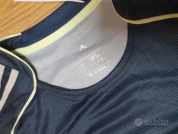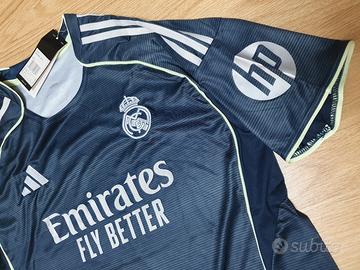 Maglia Real Madrid modello Adidas. -Colore blu scuro con dettagli bianchi. -Logo Adidas e stemma del Real Madrid sul petto. -Sponsor Emirates Fly Better stampato. -Design moderno con strisce sulle spalle. Spedizione rapida 🚚
