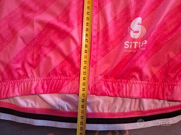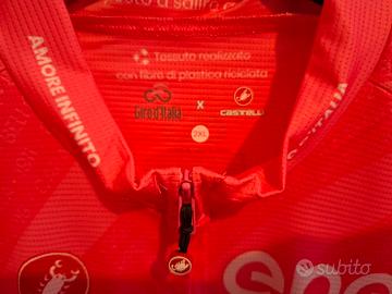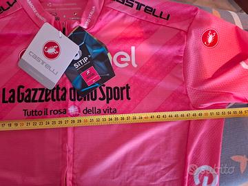 Maglia rosa Giro d'Italia 2021, modello competizione Edizione 90 anni della maglia rosa. Stupenda e in condizioni perfette; Usata pochissime volte perché troppo grande per me. Taglia 2XL; Distanza cuciture ascelle: 54 cm; Lunghezza cerniera: 57 cm