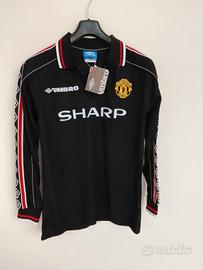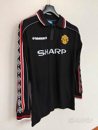 t-shirt stile vintage Manchester United Umbro a maniche lunghe con loghi laterali Roy Keane 16 taglia M iconica maglietta da calcio nera con sponsor Sharp