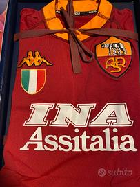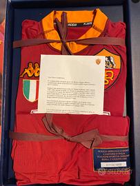 Maglia Ufficiale Kappa A.S. Roma Campione d’Italia Stagione 2000/2001 EDIZIONE LIMITATA E NUMERATA Indossata 2 volte, taglia S Conservata sempre nella sua scatola. Confezione, lettera e busta d’acquisto originali, con scudetto applicato ufficialmente. Numero 001136/10000