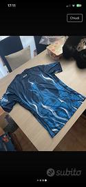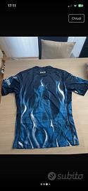 Maglia ufficiale SSC Napoli firmata EA7, colore blu con grafica speciale effetto fiamme.