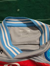 Colore grigio con dettagli azzurri, sponsor Lete e MSC sul fronte, logo SSC Napoli ricamato e dettagli di alta qualità .