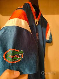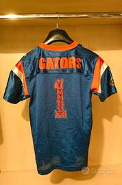 Maglia da football americano Starter Team dedicata ai Florida Gators, taglia giovanile M (10/12 americana), realizzata in 100% poliestere. Colori ufficiali blu/arancio con dettagli bianchi e loghi ricamati sul petto e sulle maniche. Modello vintage, probabilmente fine anni ’90 / primi 2000, oggi difficile da trovare.