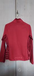 Maglia stretch Alpenplus color fragola con inserti laterali e bordo collo color rosso. Un po' felpatina all'interno per autunno/inverno. Mezza zip - taglia M che corrisponde ad un 44.