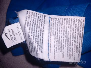 Vendo t-shirt ufficiale Nike dell'Inter, risalente alla stagione 2011/2012. Il colore è il classico blu royal con una grafica frontale molto particolare che include lo stemma del club, richiami storici e la bandiera crociata (simbolo di Milano) sulla spalla. Marca: Nike (Prodotto ufficiale Inter) Stagione: 2011/12 Condizioni: come nuova Dettagli: Tessuto morbido e traspirante, patch logo Nike e stemma Inter integrati nel design. Vestibilità: M Perfetta per appassionati del merchandising storico nerazzurro o da indossare allo stadio. 📦 Spedizione rapida e pacchetto curato. Per qualsiasi info o misure precise, scrivimi pure! Tag: #Inter #NikeFootball #Nerazzurri #InterMilan #VintageFootball #MagliaCalcio #Amala