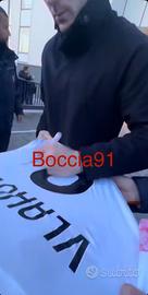 modello away Dusan Vlahovic e autografata. La maglia nuova ed è un pezzo da collezione per i tifosi della Juventus.