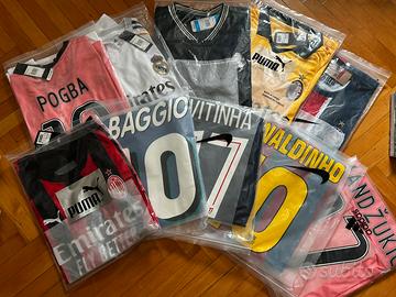 Vendo maglie da calcio nuove, mai indossate e ancora con cartellino, di varie squadre e giocatori iconici del passato e del presente.