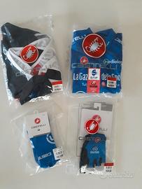Maglie ciclistiche e completi di varie marche e taglie - TUTTO NUOVO ed ORIGINALE - La maglia TREK- Segafredo (Giro 2023) autenticamente autografata dai componenti della squadra - Il completo blù del Giro d'Italia è abbinato con guanti e calzini - Varie maglie del ReStelvio edite dal 2017 al 2025 (serie di 7 maglie x soli 160 €.) e vestiario Androni.