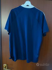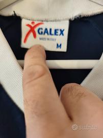 maglia d"allenamento vintage dell'A.C. Perugia, prodotta dallo sponsor tecnico Galex In base al design e ai loghi, si tratta di una maglia da allenamento risalente alla stagione 1999-2000 o 2000-2001. Caratteristiche principali Squadra: A.C. Perugia. Brand: Galex, storico sponsor tecnico della squadra umbra tra il 1995 e il 2005. Design: Colore blu navy con scollo a V bianco e dettagli a contrasto sulle maniche che richiamano il logo del brand. Stemma: Il logo del club, con il caratteristico grifone, è visibile sul lato sinistro del petto. In quegli anni il Perugia militava in Serie A, guidato da allenatori come Carlo Mazzone e Serse Cosmi. È un pezzo da collezione molto ricercato dagli appassionati di maglie vintage, in particolare per il legame con l'era Gaucci. Qualche filo tirato visibile in ultima foto