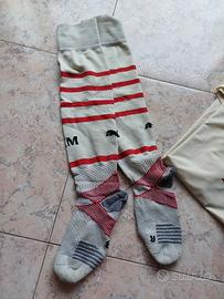 Maglietta allenamento Milan tg.S e calzettoni tecnici mis.3. Buono stato, si segnala un alone scuro sulla maglietta.