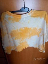 maglietta corta bianca con sfumature gialla manichina particolare ideale per la palestra taglia S brand bershka