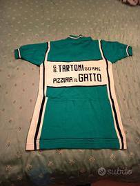 bellissima maglietta da ciclismo verde a righe laterali bianche con pubblicità ricamata misura 3