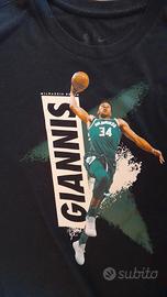 Maglietta nera Nike originale dri-fit dedicata a Giannis Antetokounmpo della squadra basket NBA Milwaukee Bucks.