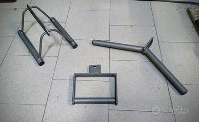 vendo accessori per stazione panca multifunzione da collegare a una catena a un moschettone per eseguire esercizi di body building. maniglia con tubo rotante rezzo 20 euro sbarra maniglia per dorsali lat pull down,per fare anche bicipiti,tricipiti ecc,larghezza totale 60cm prezzo 30 euro sbarra a v per esercizi di tricipiti,bicipiti,dorsali,prezzo 20 euro. presa pulley doppia maniglia per latmachine , t bar,macchina multifunzione per schiena,pettorali ecc prezzo 30 euro maniglie pulley largo per macchina multifunzione,per fare schiena e grazie alla staffetta ci si puo infilare il bilanciere per fare il T bar,prezzo 35 euro anche whatsapp 334/3065694