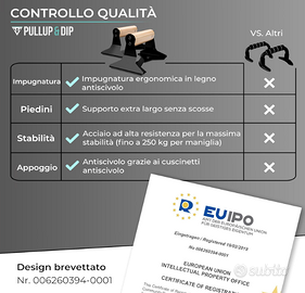 PULLUP & DIP Maniglie palestra con impugnatura ergonomica in legno e acciaio molto resistente - Push up bar antiscivolo per l'allenamento di forza - Parallele calisthenics