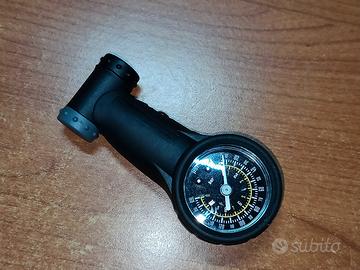 Manometro di precisione portatile per pressione pneumatici bici, auto, ecc. Possibilità di misurare pneumatici con valvole sia Schrader che Presta. Scala misurazione bar e psi.