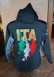 Mantella leggermente imbottita taglia M con cappuccio, comode e pratiche tasche zippate, impreziosita dai loghi FISI e EA7 istituzionali e dalla maxi stampa ITA realizzata in luminose lettere oro, incorniciate dalla suggestiva grafica tricolore. Presenti numerosi sponsor della nazionale di sci italiana. Tasche multiple con cerniera. Il capo è interamente impermeabile. In dotazione solo per atleti e staff fisi. Un'occasione unica per mostrare tutto lo stile sulle piste da sci. Capo da usare nelle giornate bagnate sopra la divisa da sci. È accorciabile grazie ai bottoni interni, come da foto. La mantella è pari al nuovo, è stata usata solamente una volta. #kappa #fisi #EA7 #sci #ski #rossignol #head #salomon #atomic #völk #dynastar #fisher #worldcup #armada #elan #poc #arva #northface #snowpark #free #colmar #picture #level #leki #pow #snowboard #nieve #christmas #navidad #est #snowpark #free #descente #picture #allmountain #navidad #esqui #nieve #snow #head #spyder #est #raptor #eisbar #oakley #audi #falconeri
