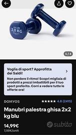 Vendo set 2 manubri rivestiti gomma 2 x 2kg decathlon pesi