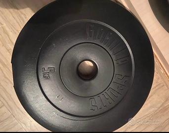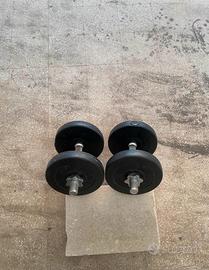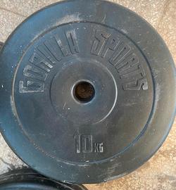 2pesi da 10kg 4pesi da 5kg 4pesi da 2.5kg 4pesi da 1.25 1 asta 2 manubri 6ferma pesi 80€