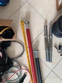 Vendo 2 manubri con 16 kg di dischi 2 barre per trazioni avvitabili Elastici usati usati 2 volte