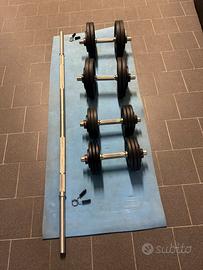 Due coppi di manubri + un bilanciere (m.1,55) in acciaio con relativi bloccapesi + pesi in ghisa per un totale di 70 Kg (8 x 5 Kg - 12 x 2 Kg - 4 x 1 Kg - 4 x 1/2 Kg) diametro foro 28 mm (misura decathlon),il tutto in ottime condizioni. Vendo in blocco a 120 euro. Non spedisco. Scambio a mano a Traona (SO) o zone limitrofe.