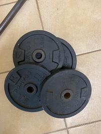 In totale sono 4 dischi da 2kg, 8 dischi da 1kg (ne ho anche altri ma sono tanto più rovinati quindi non so), 4 dischi da 5 kg