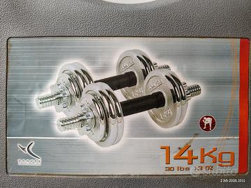 Vendo manubri Domyos con pesi di varie misure, per un totale di 14 kg, per allenarsi liberamente in casa, pari al nuovo mai utilizzati. Solo scambi a mano e no perditempo.