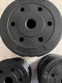La confezione presenterà 2 manubri irregolabili , un totale di 12 dischi. Per un totale di 20 kg. I manubri tramite un apposito modulo, saranno modulabili in bilanciere.com'è mostrato in foto. I pensi non sono stati mai usati e sono assolutamente nuovi di zecca