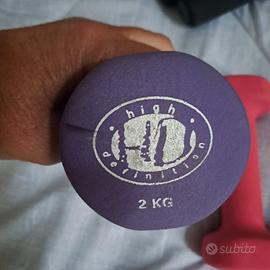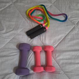 Set palestra composto da due manubri neoprene Weider da 1 kg, un manubrio neoprene da 2 kg e corda per saltare multicolor con manubri in spugna